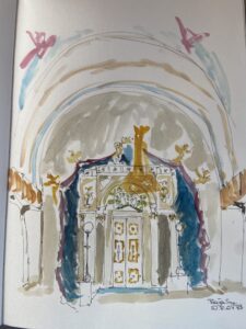 The next day, Barbara and I returned to draw and take a few pictures. Luckily, a lady who lives in the surrounding apartment building opened the gate and I could slip into the courtyard to snap a few photos.