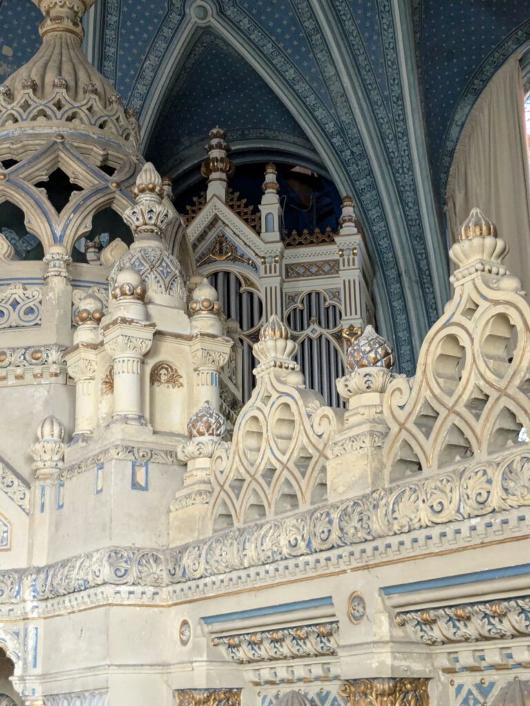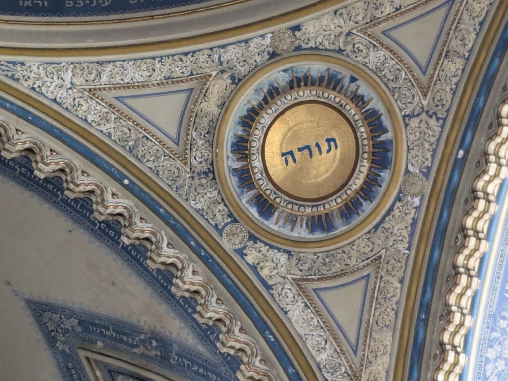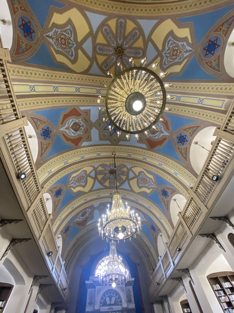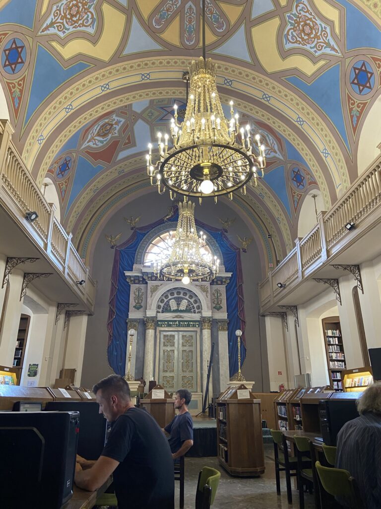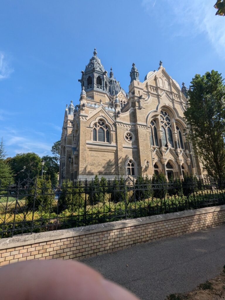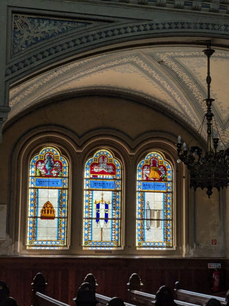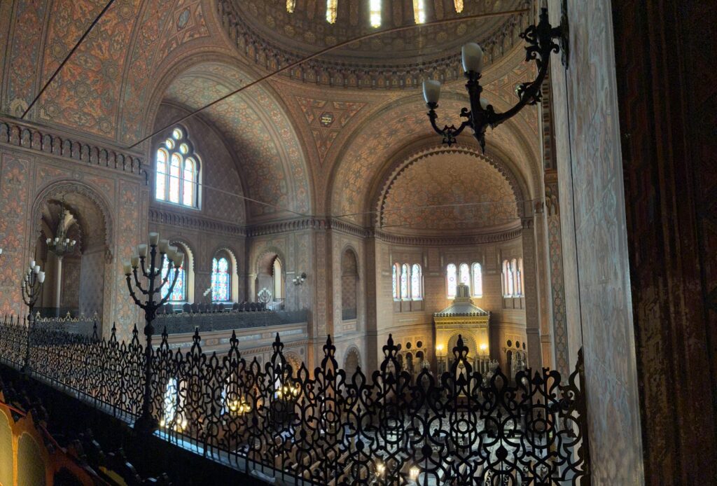 the dome of the synagogue is visible from far away. So, we knew where to head to on this really hot day in June. But we missed it and it took us detours and google maps to find it. A huge building, such huge buildings we saw only in Triest and in some places in Hungary. Impressive building, in moorish style. Inside it gives the feeling of being made out of wood, at least the colours give such an impression..