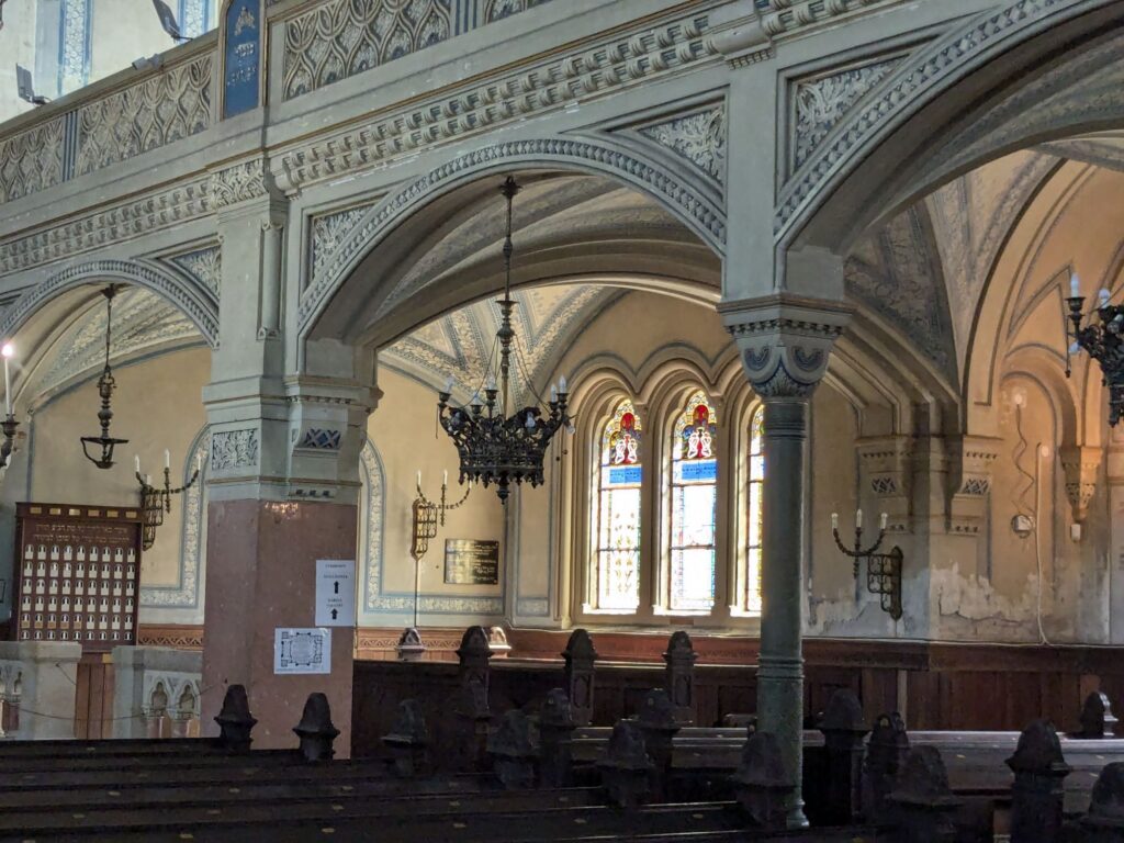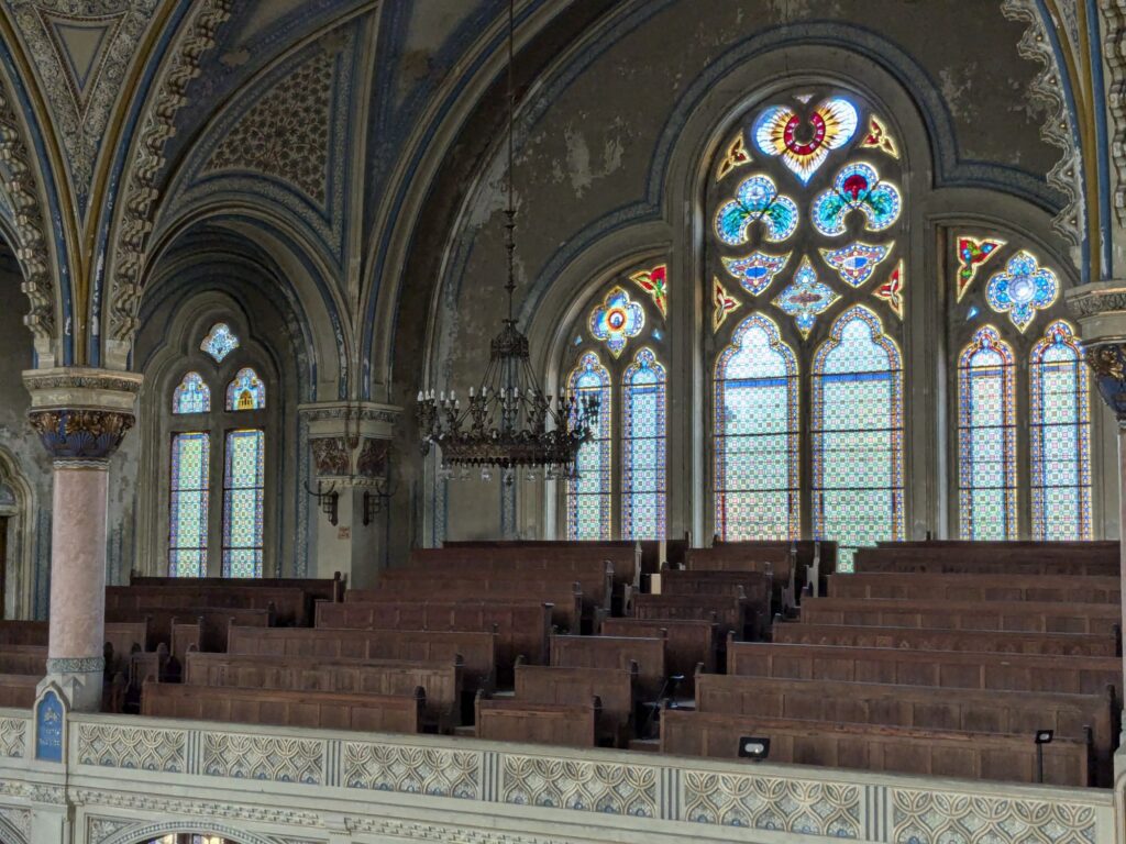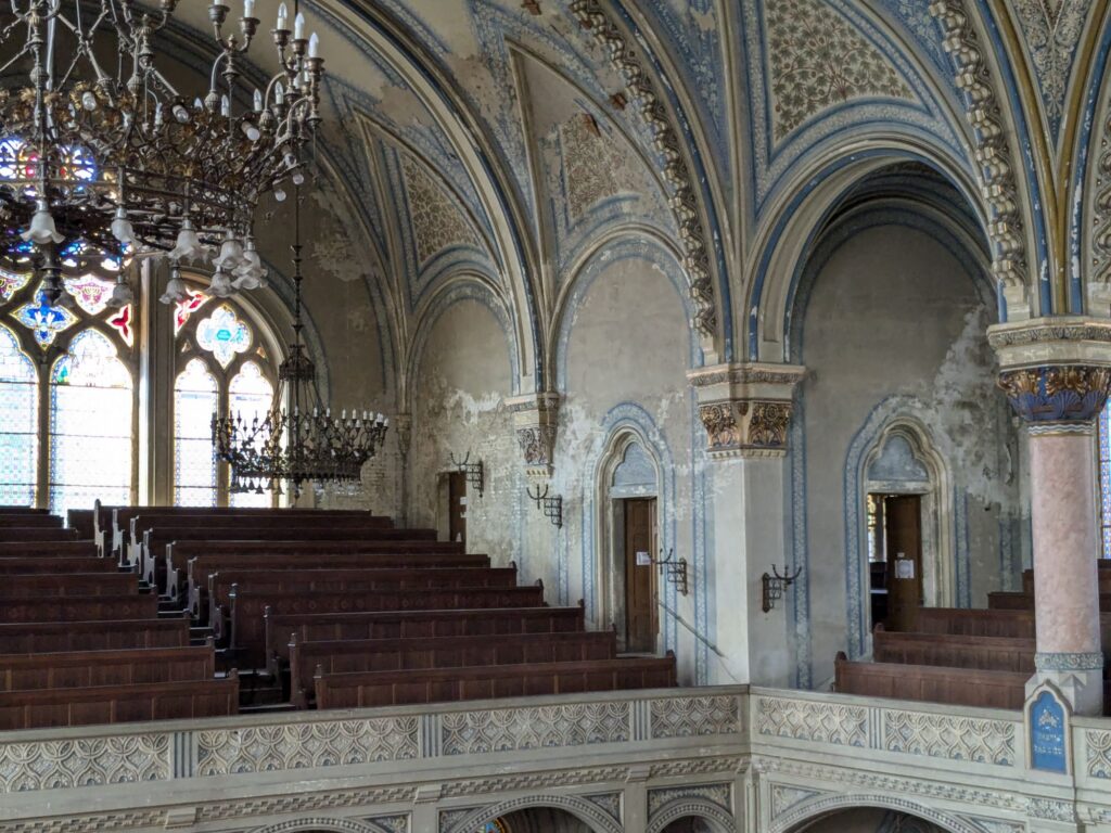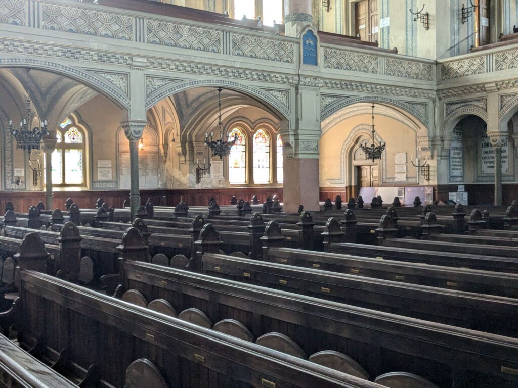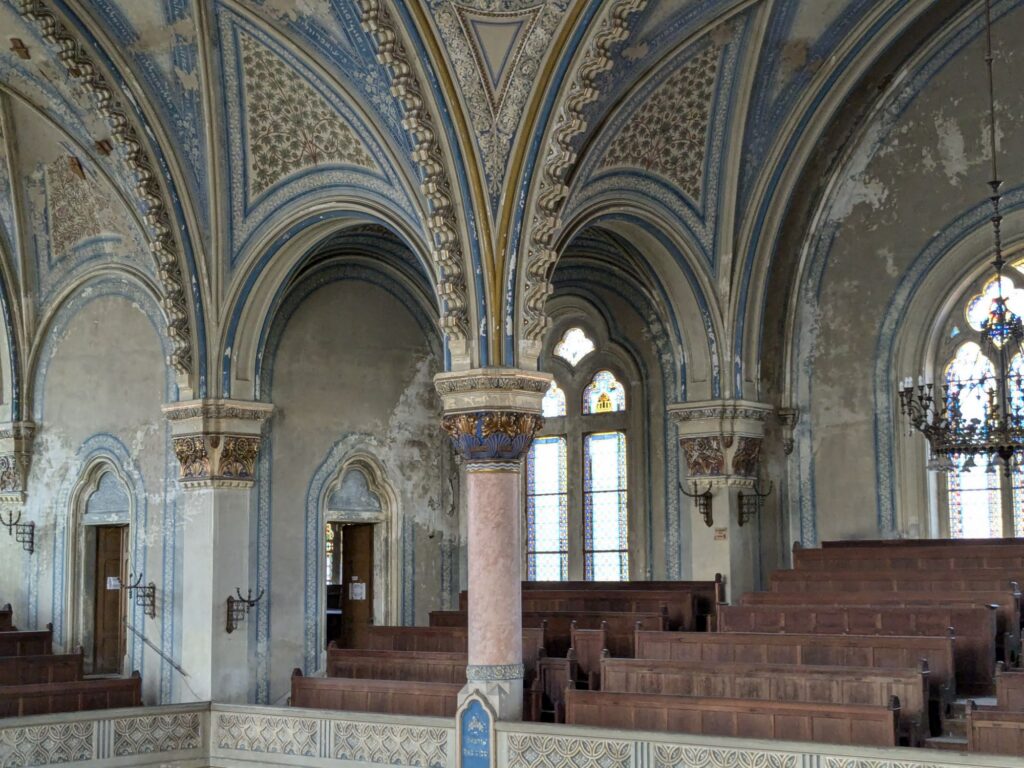 The synagogue was built in 1869, based on designs by Architekten Frigyes Feszl, Károly Gerster and Lipót Kauser. Today it is in fairly good shape, the ceiling has to secured by nets.