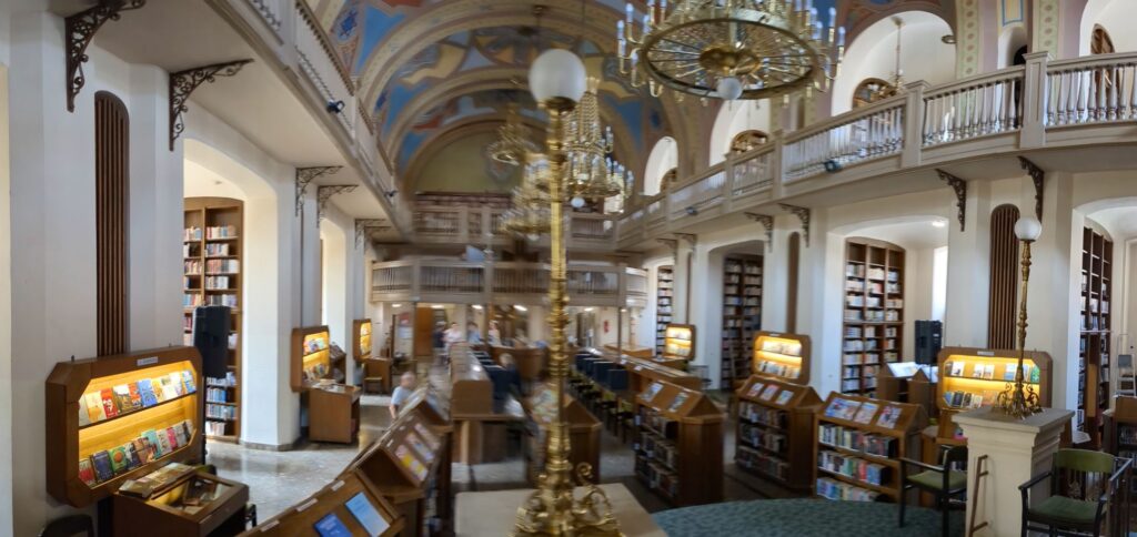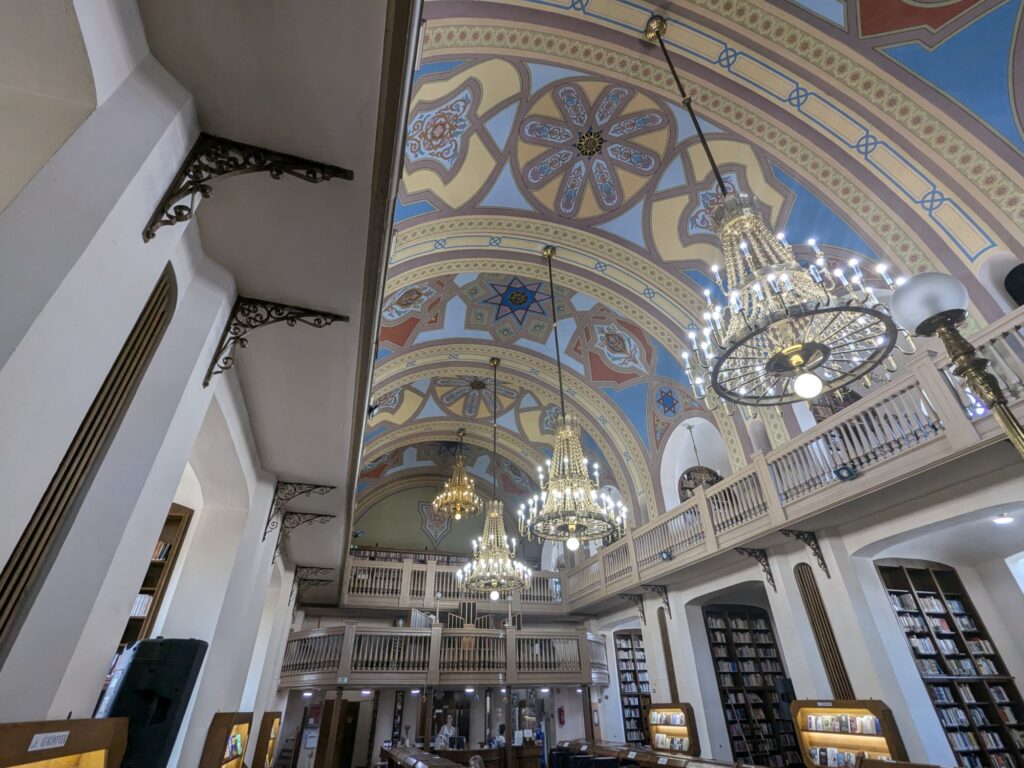 The synagogue in Baja is a beauty: a classicist building with wonderful paintings. In excellent state and with perfect use: as the local library.