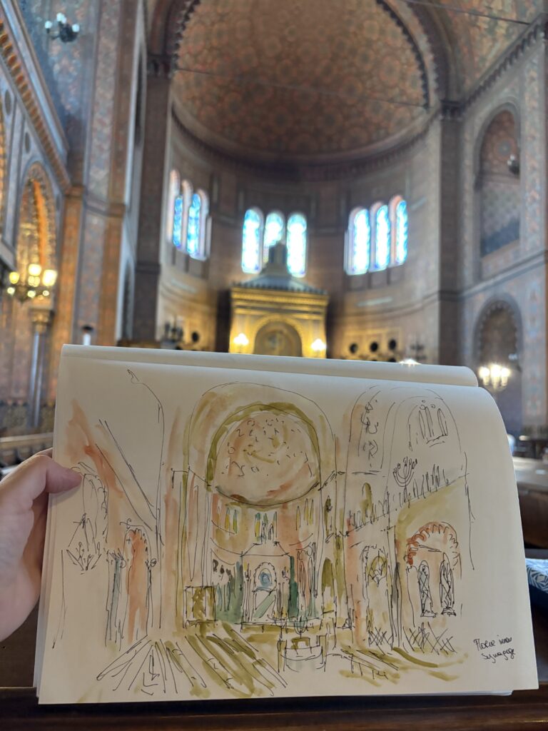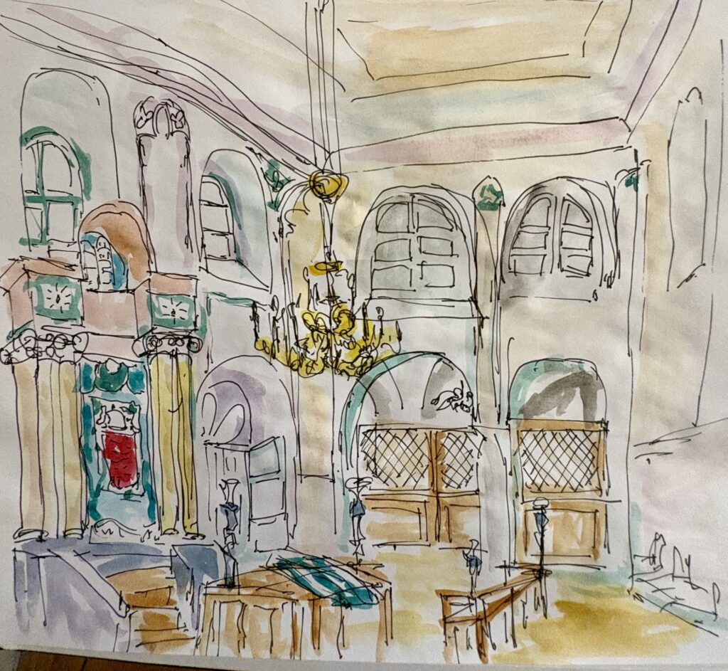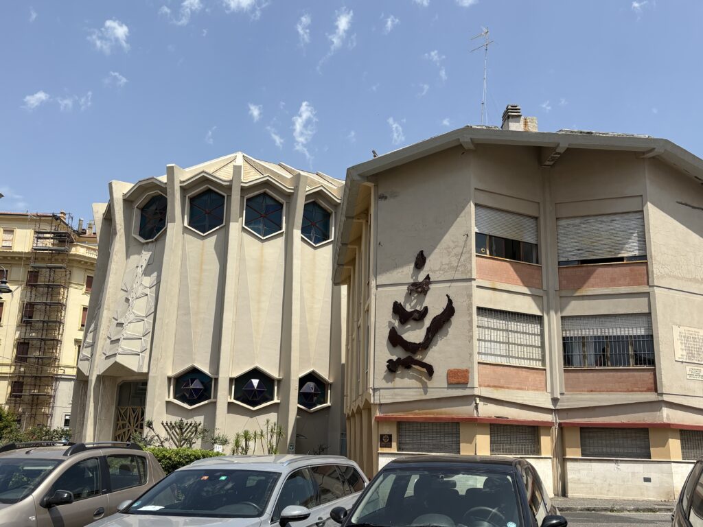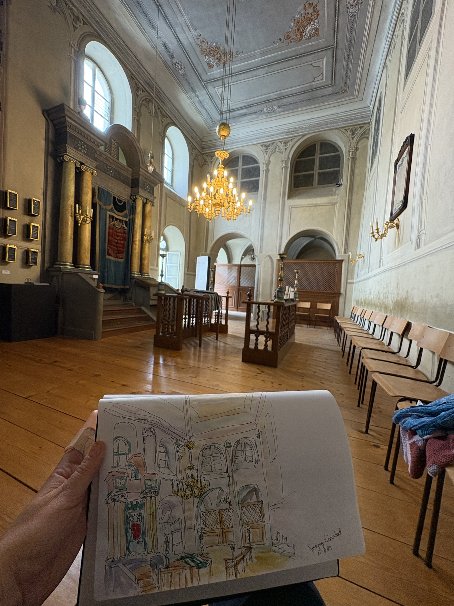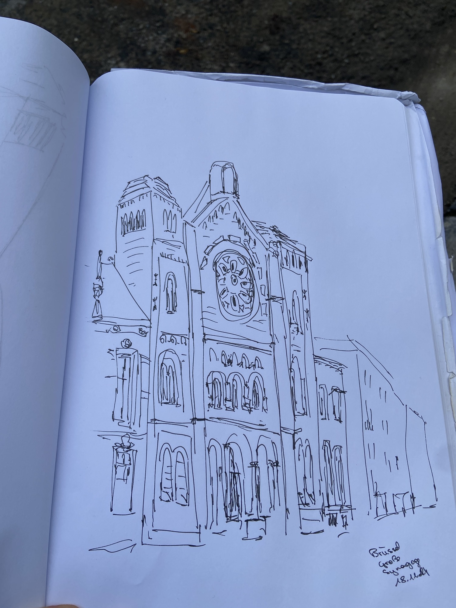 This place is truly special. A modern Synagogue, built in 1962. nothing you would ever see anywhere. And very difficult todraw, since it is so uncommon. it would need some renovation and the building next to the synagogue is probably even in worse shape. But it is really worth coming here and visit this place, even when it is not possible to go inside.