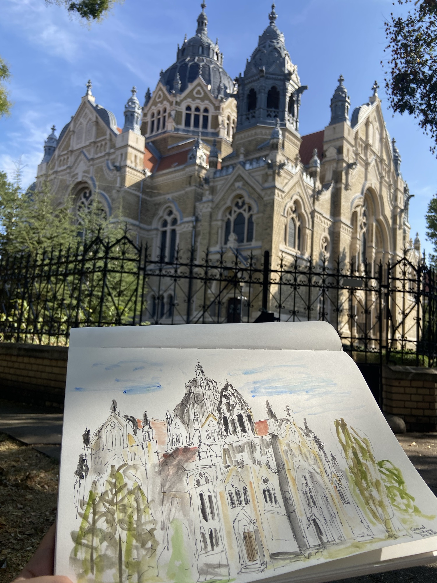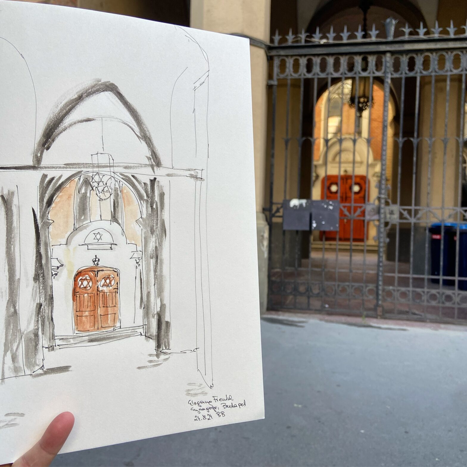 I did not know where to start, so much to draw would be here. I have to come back to do more drawings… But more than this one synagogue I did not manage. But what a great place! It is the Sasz-Chevra Orthodox Grand Synagogue. Located in the „Jewish quarter“ in Pest in Kacinzky Street. […]